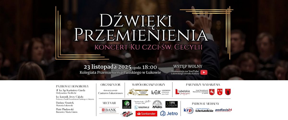 Muzyka, wiara i wspólnota połączą się w wyjątkowym wydarzeniu artystycznym w Łukowie. W ramach projektu „Dźwięki Przemienienia – koncert chóralno–instrumentalny ku czci św. Cecylii" odbędzie się koncert 23 listopada o godzinie 18:00 w Kolegiacie Przemienienia Pańskiego w Łukowie.