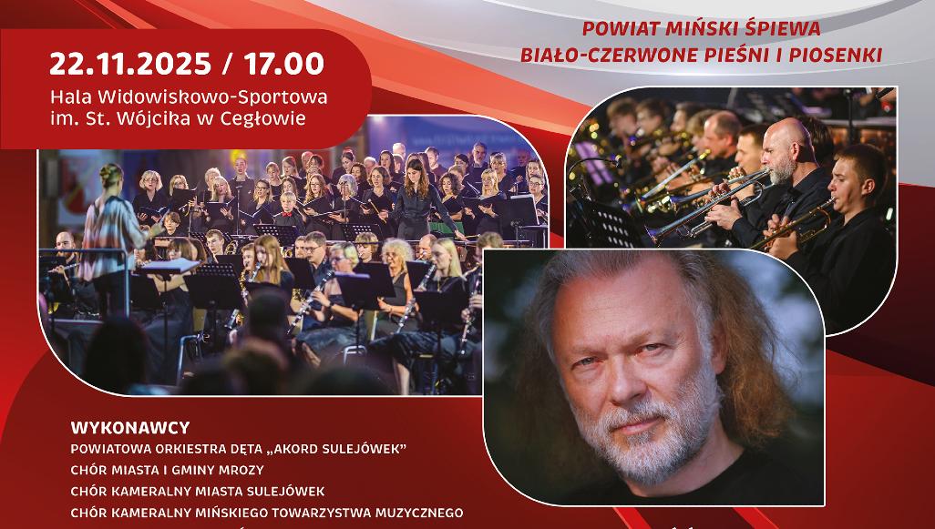 Koncert, nad którym patronat honorowy objął Poseł na Sejm RP Daniel Milewski, zgromadzi setki wykonawców i miłośników biało-czerwonych pieśni.Pod hasłem „Powiat Miński śpiewa biało-czerwone pieśni i piosenki” na scenie wystąpią m.in.: