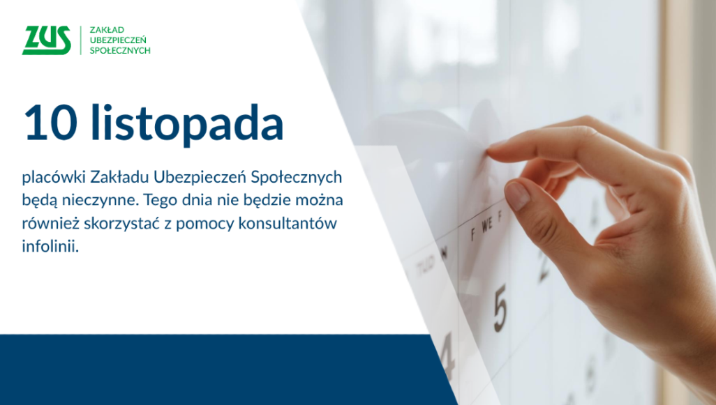 Wiele instytucji robi sobie tak zwany długi weekend i z racji wypadającego we wtorek Narodowego Święta Niepodległości nie pracuje również w poniedziałek. Tak będzie m.in. w Zakładzie Ubezpieczeń Społecznych, którego placówki terenowe oraz infolinia telefoniczna będą 10 listopada nieczynne. Nie oznacza to jednak całkowitego odcięcia interesantów od informacji.