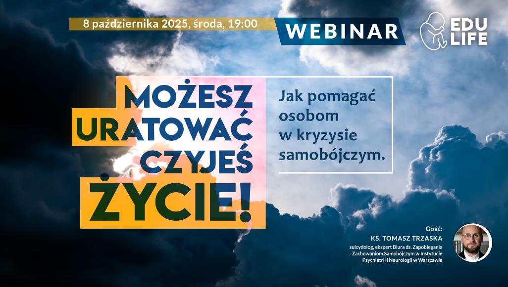 Webinar pt. „Możesz uratować czyjeś życie! Jak pomagać osobom w kryzysie samobójczym” jest kolejnym spotkaniem z cyklu EduLife, którego organizatorem jest Polskie Stowarzyszenie Obrońców Życia Człowieka. To cykl popularnonaukowych webinarów, które odbywają się raz w miesiącu od października do czerwca. Wykłady i rozmowy z zaproszonymi gośćmi są cenioną przez licznych odbiorców okazją do poszukiwania odpowiedzi na najtrudniejsze pytania m.in. o prawo do życia, rozwój dziecka w łonie matki, cele diagnostyki prenatalnej. Wszystkie nagrania webinarów są dostępne na kanale Polskiego Stowarzyszenia Obrońców Życia Człowieka na YouTube.
