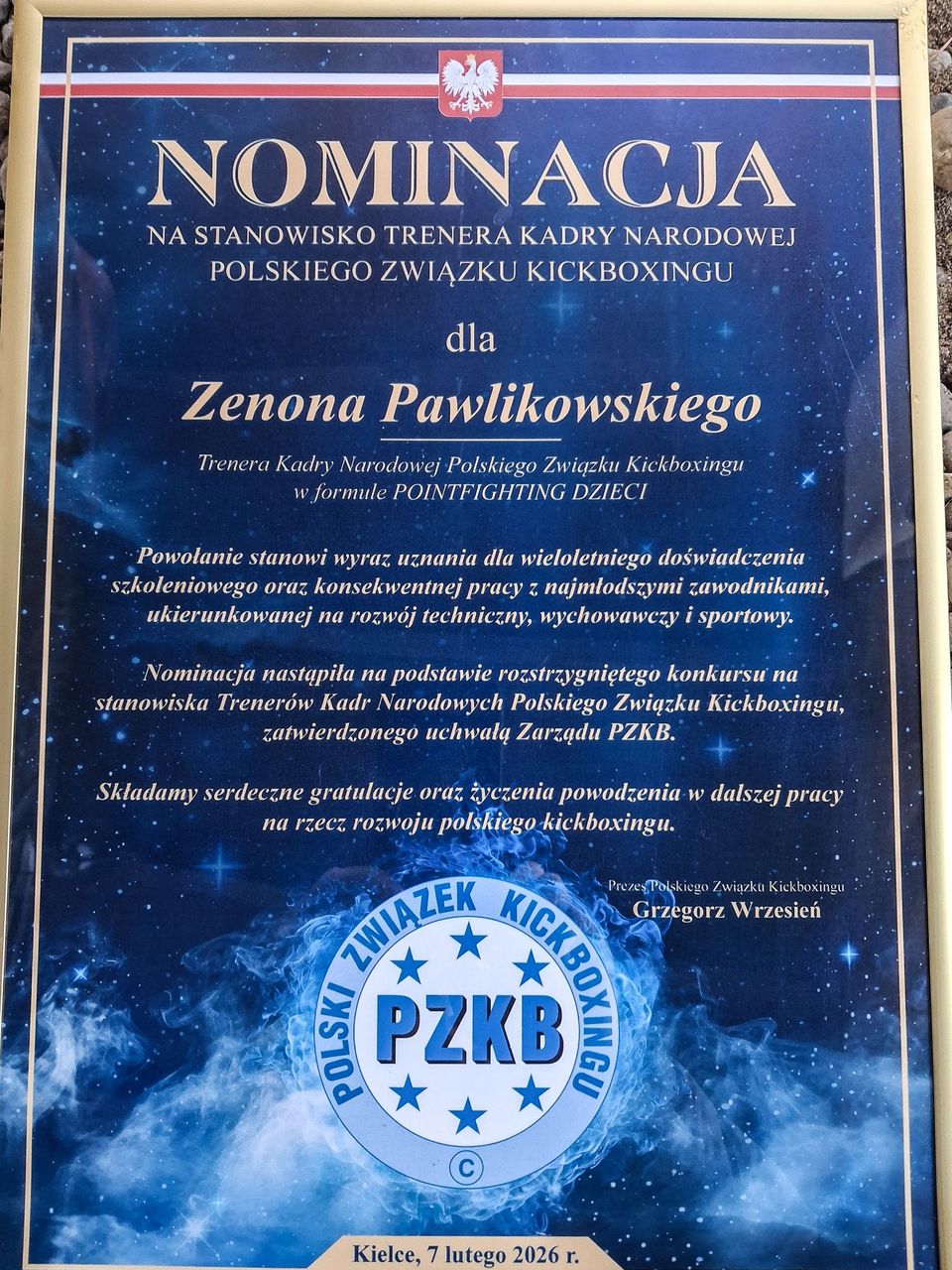 Podczas gali „HEROSY 2025 – Laureaci Polskiego Kickboxingu”, która odbywała się 7 lutego w Kielcach, Grzegorz Wrzesień, prezes Zarządu Polskiego Związku Kickboxingu, wręczył nominacje dla trenerów kadr narodowych. Jedną z nich otrzymał trener KSW Łuków, Zenon Pawlikowski. Będzie on teraz wraz z drugim trenerem Łukaszem Staińskim ze Świdnika, przygotowywać zawodników kadry narodowej dzieci Polskiego Związku Kickboxingu do Mistrzostw Świata, które odbędą się we wrześniu we Włoszech.Zenon Pawlikowski jest doświadczonym szkoleniowcem. Posiada stopień mistrzowski w kickboxingu IV DAN, uprawnienia trenera I klasy w kickboxingu i uprawnienia trenera II klasy w boksie. Od 2018 roku jest trenerem Kadry Narodowej Polskiego Związku Kickboxingu.